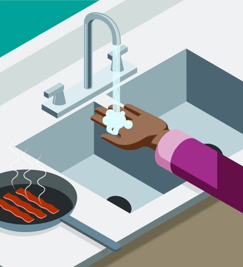 You can treat a minor burn, like a hot, bacon-grease burn, without medical attention by treating it with care: